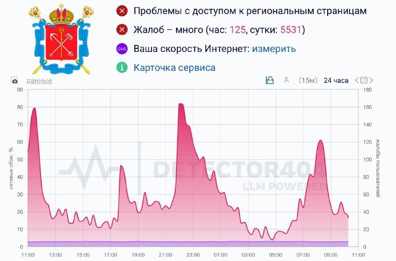 В Санкт-Петербурге снова появились проблемы с мобильным интернетом. За последние сутки зафиксировано более 5 тысяч жалоб, большинство из которых поступило утром. Ситуация остается привычной: стараемся не отключаться от Wi-Fi или используем только белый список. Постмейкер - автоматическое ведение канала 🤖 Анимация | СhatGPT-4 | Помощь с резюме
