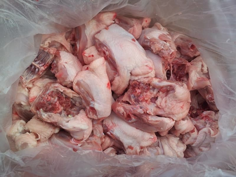 - Кости должны выглядеть свежими. У куриных — розоватый или светло-желтый оттенок. У говяжьих и свиных — насыщенный красный или темно-розовый цвет мяса на кости. Избегайте заветренных, потемневших или серых кусков.