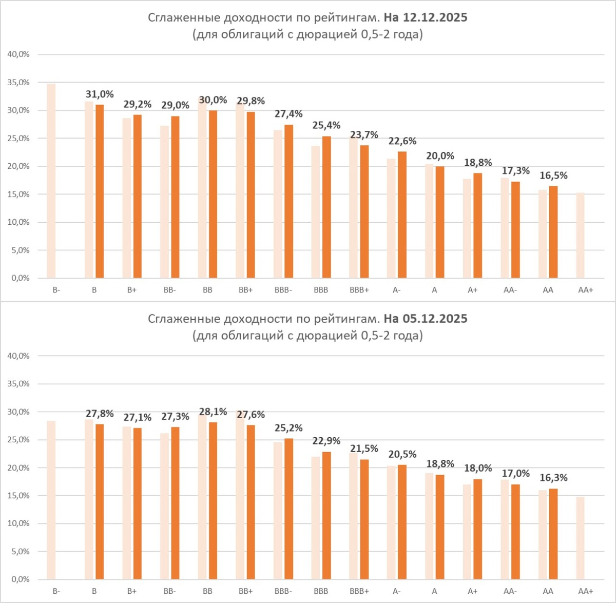 Как изменились средние доходности облигаций (по рейтингам) за неделю