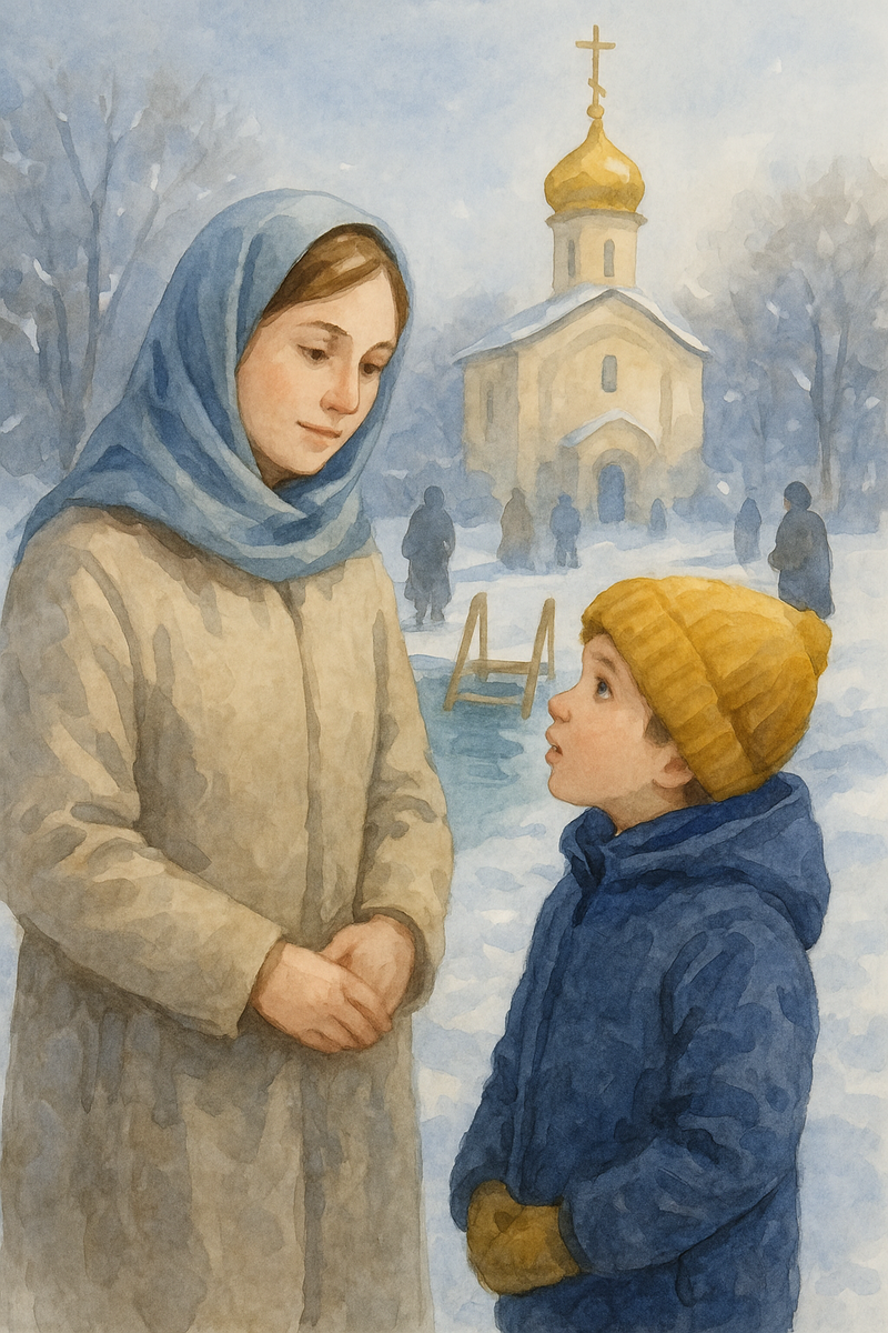 Каждый январь этот вопрос возникает снова. Купели, мороз, фотографии людей в ледяной воде и рядом дети, которые смотрят и спрашивают: «А нам тоже надо?». Родители в этот момент часто оказываются между двух крайностей. С одной стороны — традиция, история, уважение к празднику. С другой — здравый смысл, холод и страх сделать что-то «не так». На самом деле Крещение — совсем не про испытание на выносливость и точно не про то, чтобы заставлять. Тем более не соревнование, кто смелее. Это праздник смысла и детям этот смысл важнее любых внешних атрибутов. Стоит ли идти с детьми на мороз и к купели? Короткий ответ - не обязательно. Если ребёнок сам проявляет интерес, если он физически готов, если это не через страх и давление, тогда это может быть осознанным опытом. Но если внутри у вас сомнение, если ребёнок просто повторяет за взрослыми, если за этим стоит «так надо», то лучше выбрать другой способ прожить этот день. Как объяснить ребёнку Крещение без лекций? Самое простое — через разговор б