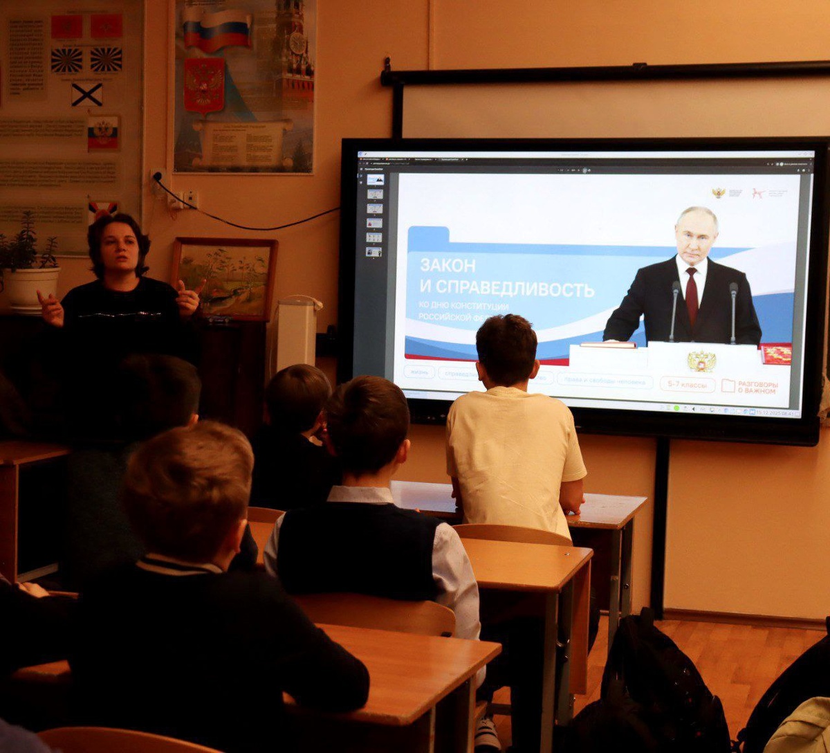 «Разговоры о важном»: учимся понимать свои права На уроке в 7 «Д» классе обсудили непростую ситуацию: ученица Катя опубликовала пост, в котором назвала школьный субботник эксплуатацией детского труда. Администрация школы потребовала удалить публикацию. Возникает важный вопрос: чьё конституционное право в этой ситуации может быть нарушено? Этот кейс стал одним из нескольких резонансных примеров, которые ребята разбирали в ходе занятия. Цель урока — не просто познакомиться с текстом Конституции РФ, а научиться применять её нормы в реальных жизненных ситуациях. Работа проходила в формате командной работы: класс разделился на 8 групп, каждая команда получила распечатки со статьями Конституции РФ. Участникам предстояло проанализировать 5 конфликтных кейсов и предложить обоснованные решения. Дискуссия оказались по‑настоящему оживлённой: школьники активно высказывали мнения, приводили аргументы и контраргументы, рассматривали ситуации с разных сторон. Такой практико‑ориентированный подхо