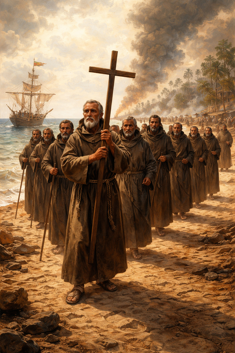 Весной 1524 года, когда пыль от падения великого Теночтитлана ещё не улеглась, а воздух Новой Испании был густ от запаха гари, крови и грандиозных перемен, к берегам Веракруса причалило утлое судно. На его борту не было ни солдат в сияющих латах, ни искателей лёгкой наживы. На раскалённый песок сошли двенадцать человек, обутых в стоптанные сандалии и облачённых в грубые рясы цвета пыли. Их прибытие стало поворотным моментом, не менее значимым, чем победы меча и аркебузы. Если Конкиста открывала земли сталью, то эти двенадцать пришли, чтобы открыть их крестом, с почти немыслимой, мессианской целью: построить в дымящихся руинах империи ацтеков Новый Иерусалим, царство Божие на земле. Это были «двенадцать апостолов Мексики», и они были не случайными монахами, а тщательно отобранным цветом францисканского ордена, элитным отрядом, чей состав и подготовка говорили о грандиозности и радикальности замысла.