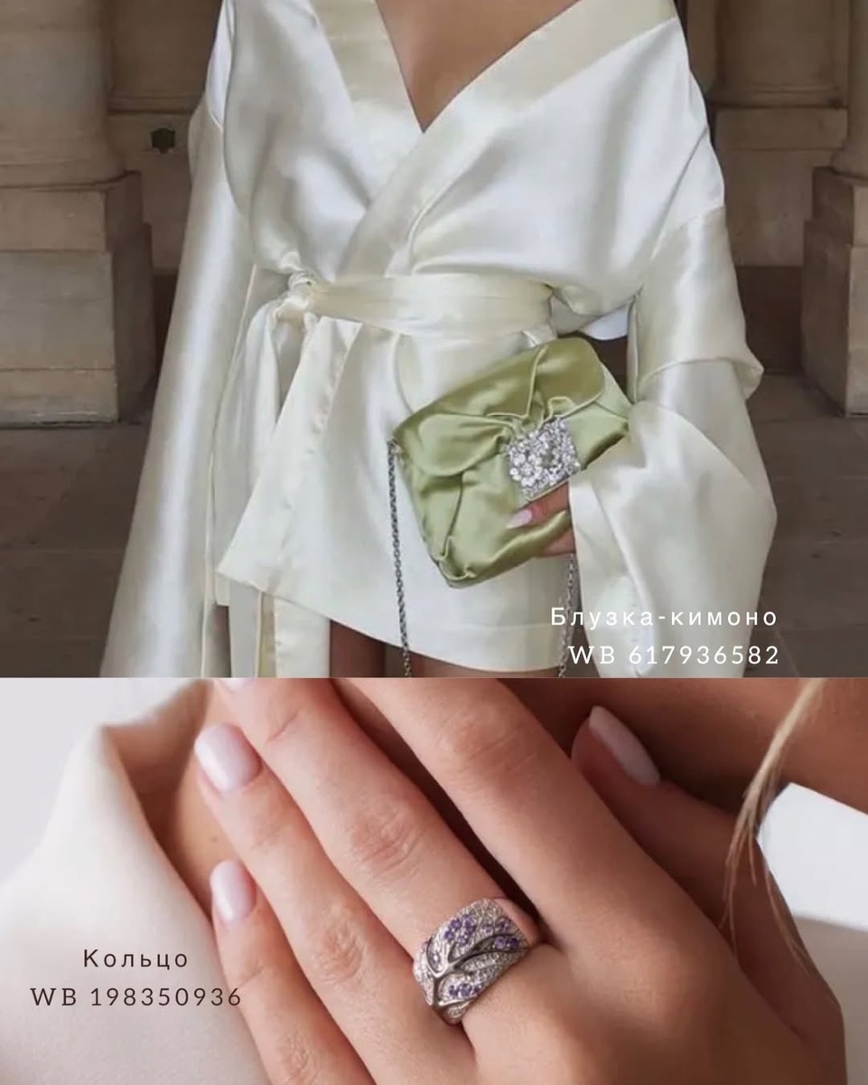 Эта подборка — про сдержанную элегантность, сложные оттенки и вещи, которые не кричат о моде, а уверенно заявляют о вкусе. Здесь нет случайных деталей: каждая фактура, линия и аксессуар работают на образ, создавая ощущение цельности и внутреннего спокойствия. Это гардероб для тех, кто ценит стиль без суеты — женственный, взрослый, актуальный сегодня и завтра. Ниже — подробный разбор каждой находки строго по порядку, с рекомендациями по сочетаниям, сезонам и профессиональными советами стилиста. 1. Блузка-кимоно, ВБ 617936582 Блузка-кимоно в молочно-кремовом оттенке — настоящий символ утончённой женственности. Свободный крой с запахом мягко подчёркивает линию талии, а струящаяся ткань красиво движется при ходьбе. Широкие рукава создают эффект воздушности и добавляют образу изысканную театральность, при этом оставаясь уместными в повседневном гардеробе. С чем носить: – с юбками миди и макси прямого или слегка расклешённого силуэта – с классическими брюками с высокой посадкой – с лаконич