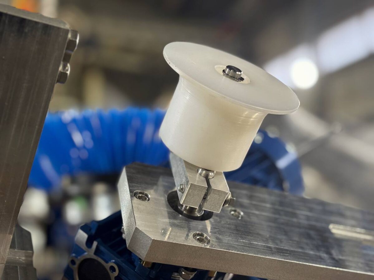 🌀 Щёточные узлы для выравнивания пласта теста на тестоформовочном оборудовании Для хлебопекарного производства СПБелт изготовил комплект щёток с электроприводом. Узлы устанавливаются по краям конвейера и выравнивают тесто по ширине во время его движения по ленте. 📐 Как это работает: • цилиндрические и радиальные щётки вращаются навстречу движению пласта; • края теста аккуратно формуются, устраняются наплывы и «волны»; • итог — ровная и стабильная форма заготовки на выходе. 🔧 Технические параметры: • привод — компактный электродвигатель с редуктором, IP55; • корпус — из нержавеющей стали, рабочие элементы — из PE; • установка на боковые направляющие ленты, регулируемое крепление; • подходит для работы в пищевой зоне, легко очищается. ⚙️ Щёточные модули полностью адаптированы под технологию клиента и интегрированы в действующую линию. Решение улучшает качество тестозаготовок, снижает количество обрезков и упрощает последующую формовку.