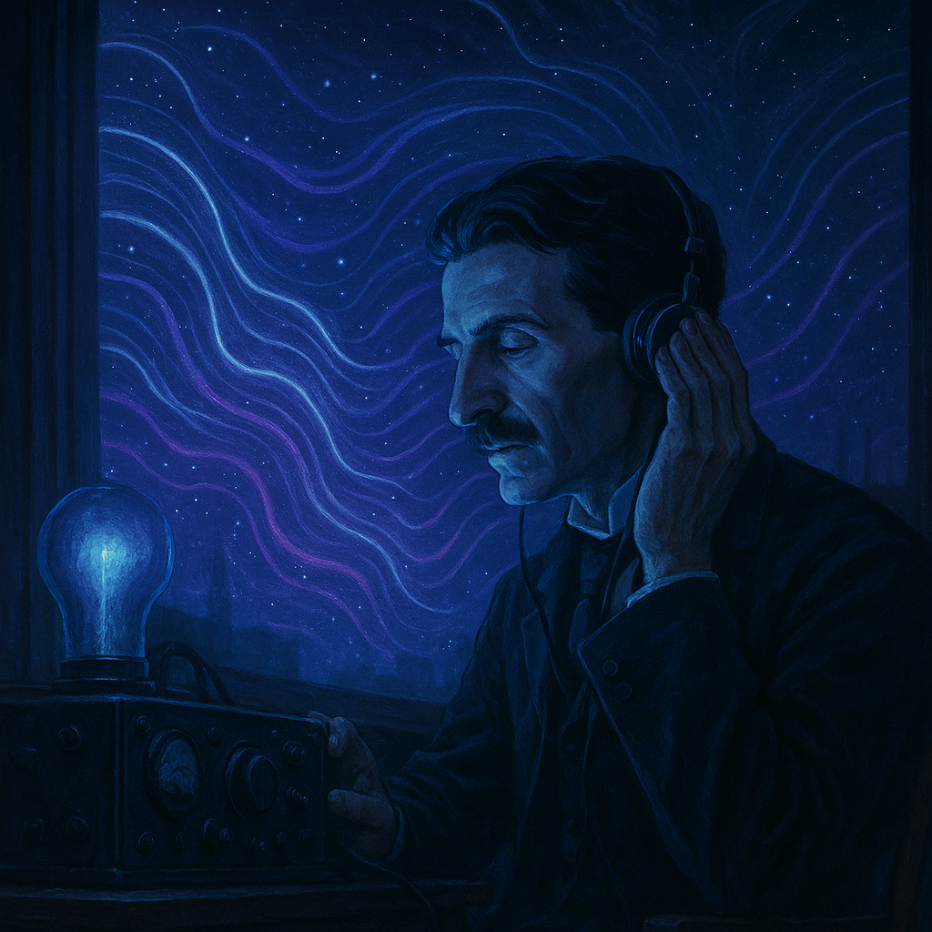 это не шум. 📡 Что именно он услышал Тесла описывал сигналы как: повторяющиеся импульсы чёткий ритм математическую структуру отсутствие хаотичности Он писал, что это похоже на попытку установить контакт, а не на случайные колебания эфира. И добавлял фразу, от которой у современников холодела спина: «Я уверен, что эти сигналы исходят не от нашей планеты.» 🧠 Его не считали сумасшедшим — и вот почему Важно понимать: