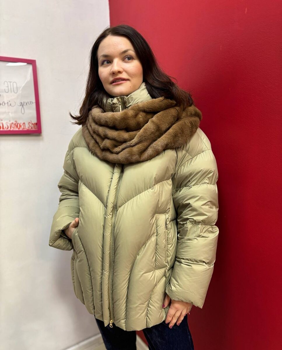 Куртка зимняя в нежно-оливковом цвете 🫒