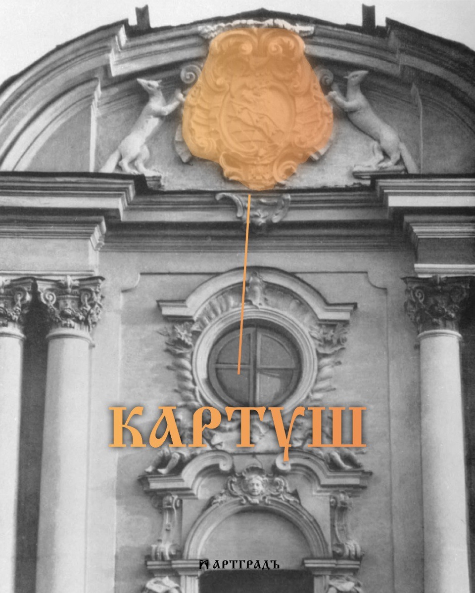 СЛОВО ДНЯ: КАРТУШ Картуш (от французского cartouche — «орнаментальная рамка в виде свитка») — это декоративный мотив в архитектуре и прикладном искусстве, представляющий собой щит или полуразвернутый свиток бумаги с надорванными краями. Он служит для размещения гербов, эмблем, надписей или дат. Происхождение термина восходит к итальянскому слову carta (бумага). Этот элемент декора возник на рубеже XV–XVI веков в эпоху Возрождения и имел различные названия: в Италии — tirate (сложное переплетение лент), во Франции — бандероль. В периоды барокко и рококо формы картушей усложнились, стали более динамичными и часто асимметричными. Со временем термин стал обозначать самые разные декоративные рамки для маскаронов, девизов или гербов. Близкой разновидностью является картель (фр. cartelle) — мотив, похожий на развернутый рулон бумаги с причудливо загнутыми уголками. В эпоху рококо картели часто сочетались с рокайлями, что породило формулу «искусство рокайлей и картелей». При этом во Франции