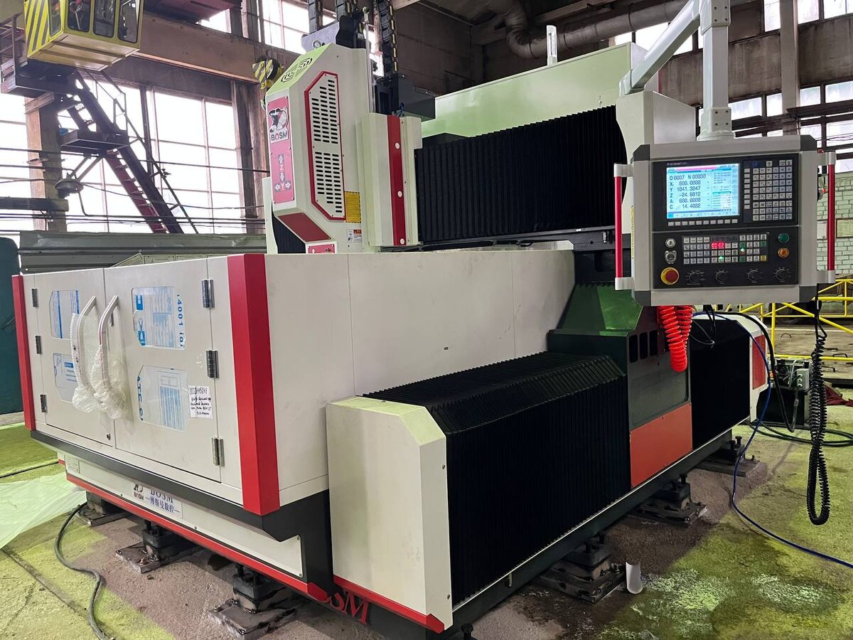 Станки серии DT отличаются цельным массивным основанием, на которое монтируется портальная конструкция из двух вертикальных колонн и поперечины. Такое решение обеспечивает повышенную жёсткость, хотя и увеличивает габариты для транспортировки. Ширина станка BOSM-DT1616 составила 3600 мм (при разрешённых 2500 мм для дорог общего пользования), поэтому доставка осуществлялась как негабаритного груза.