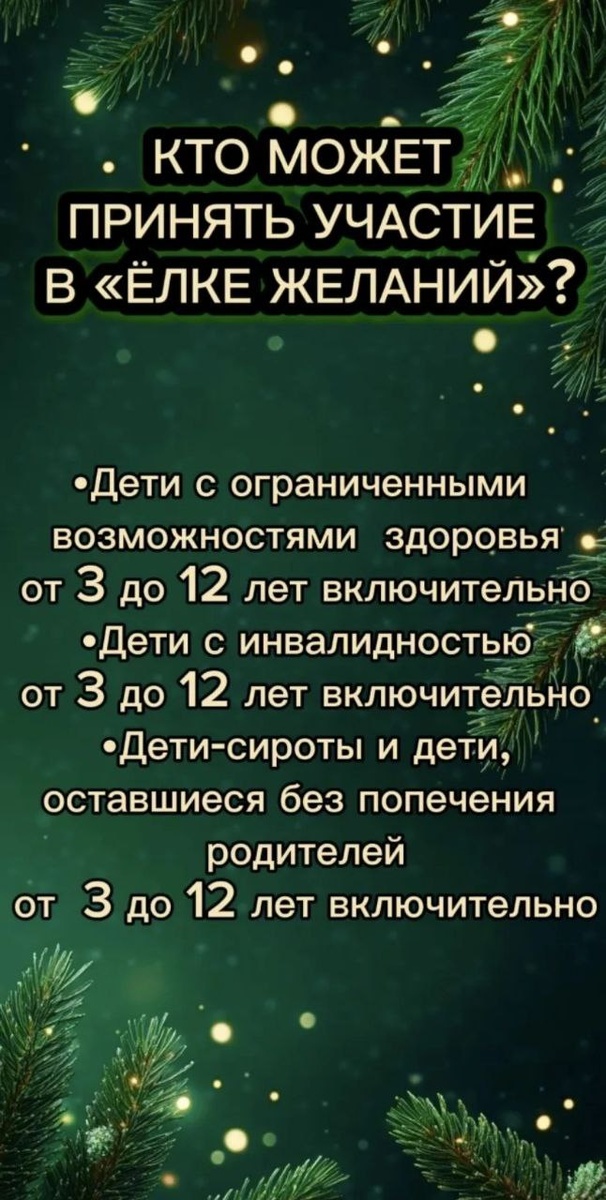 Дорогие жители Адыгейска! В нашем городе стартует добрая и долгожданная акция "Ёлка желаний" — уникальная возможность стать волшебником и исполнить мечту ребёнка, которому особенно нужны тепло и внимание. "Ёлка желаний" — всероссийская благотворительная инициатива, которая с 2018 года проходит при поддержке Президента России. В Адыгейске она уже стала доброй традицией, объединяющей неравнодушных людей ради самого ценного — детских улыбок.