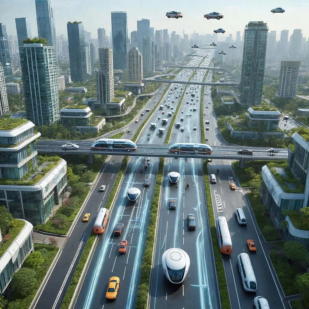Дальше Строительство беспилотной транспортной инфраструктуры кластера с учетом соединения в общую городскую сеть.Трамваи,электробусы,станции зарядки для личного электротранспорта.
