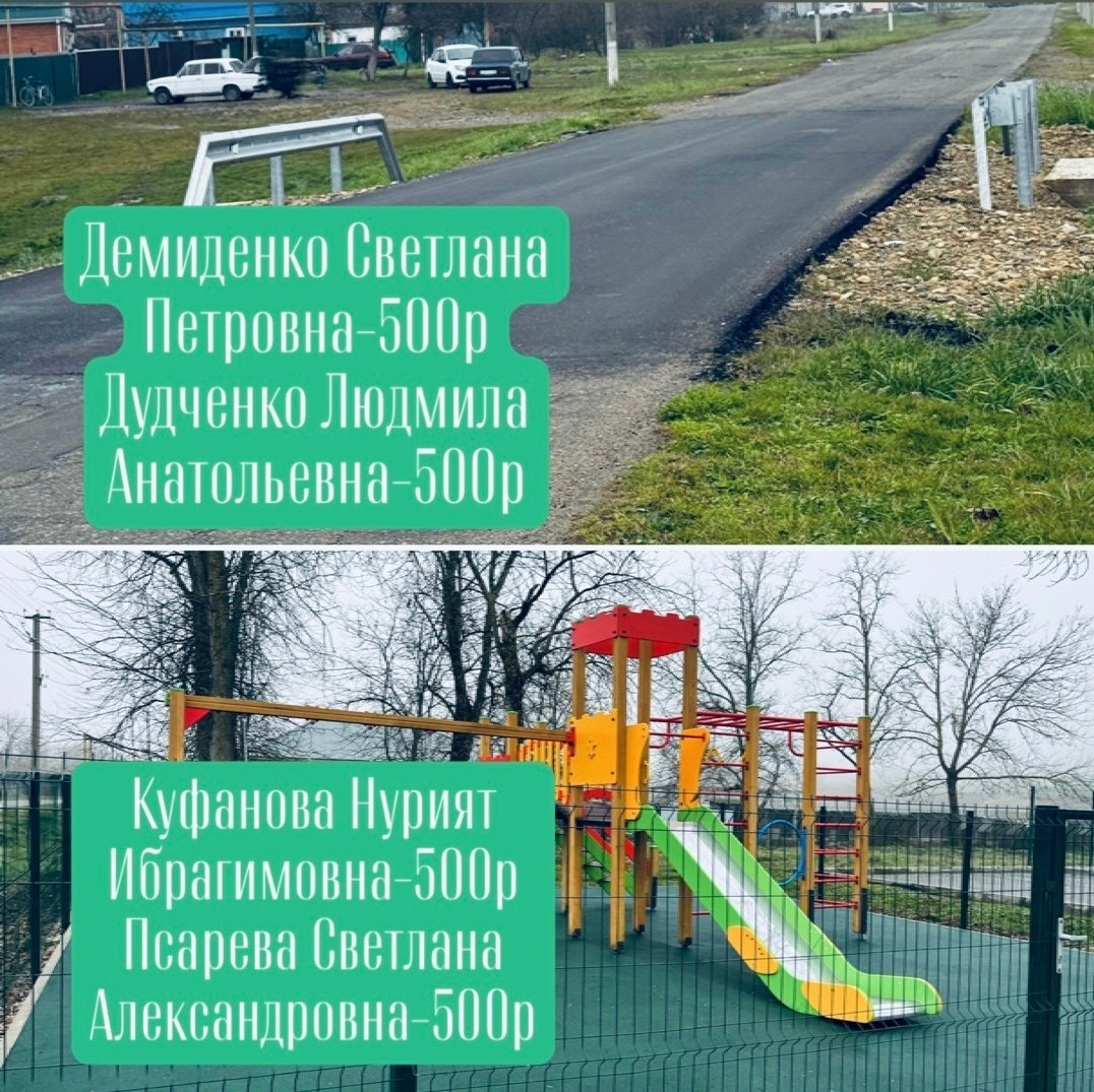 Администрация МО «Вольненское сельское поселение» выражает огромную благодарность коллективу МБОУ ООШ 13 за активное участие в сборе средств для Программы инициативного бюджетирования: «Строительство детской площадки в хуторе Кармолино-Гидроицкий» «Частичный ремонт и расширение дорожного полотна по улице Международная»