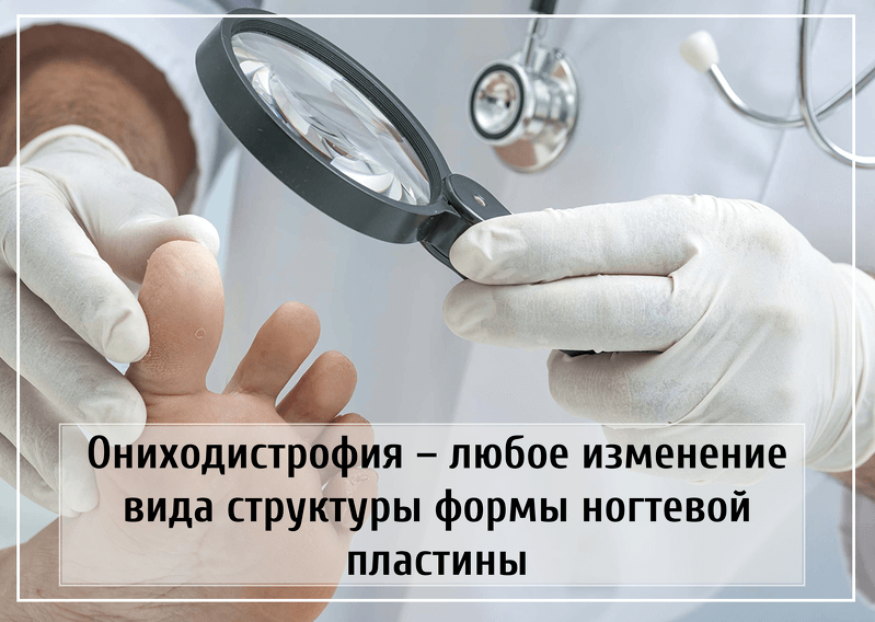 Хотя грибковое поражение — это отдельное заболевание, клинически оно проявляется именно как ониходистрофия: ногти утолщаются, крошатся, меняют цвет на желтый, коричневый, теряют прозрачность.