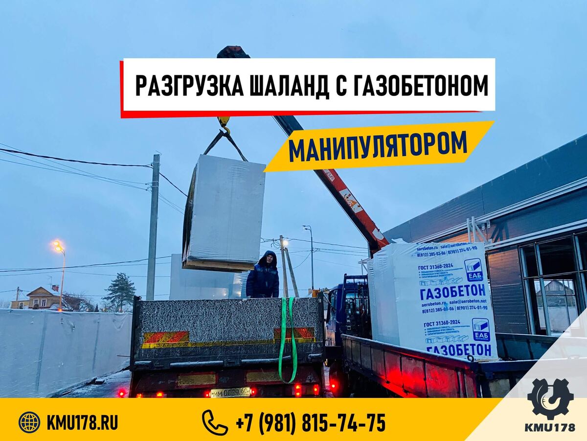 Нужно было разгрузить две шаланды, доставившие партию паллет с газобетоном общим весом 1.2 тонны. Ключевое требование клиента — не просто снять груз с машины, а бережно разложить паллеты вдоль здания. Это нужно было для того, чтобы строителям было максимально удобно и быстро подносить блоки к месту кладки, экономя время и силы на лишних переносах со свалки. Решение: технология бережливости