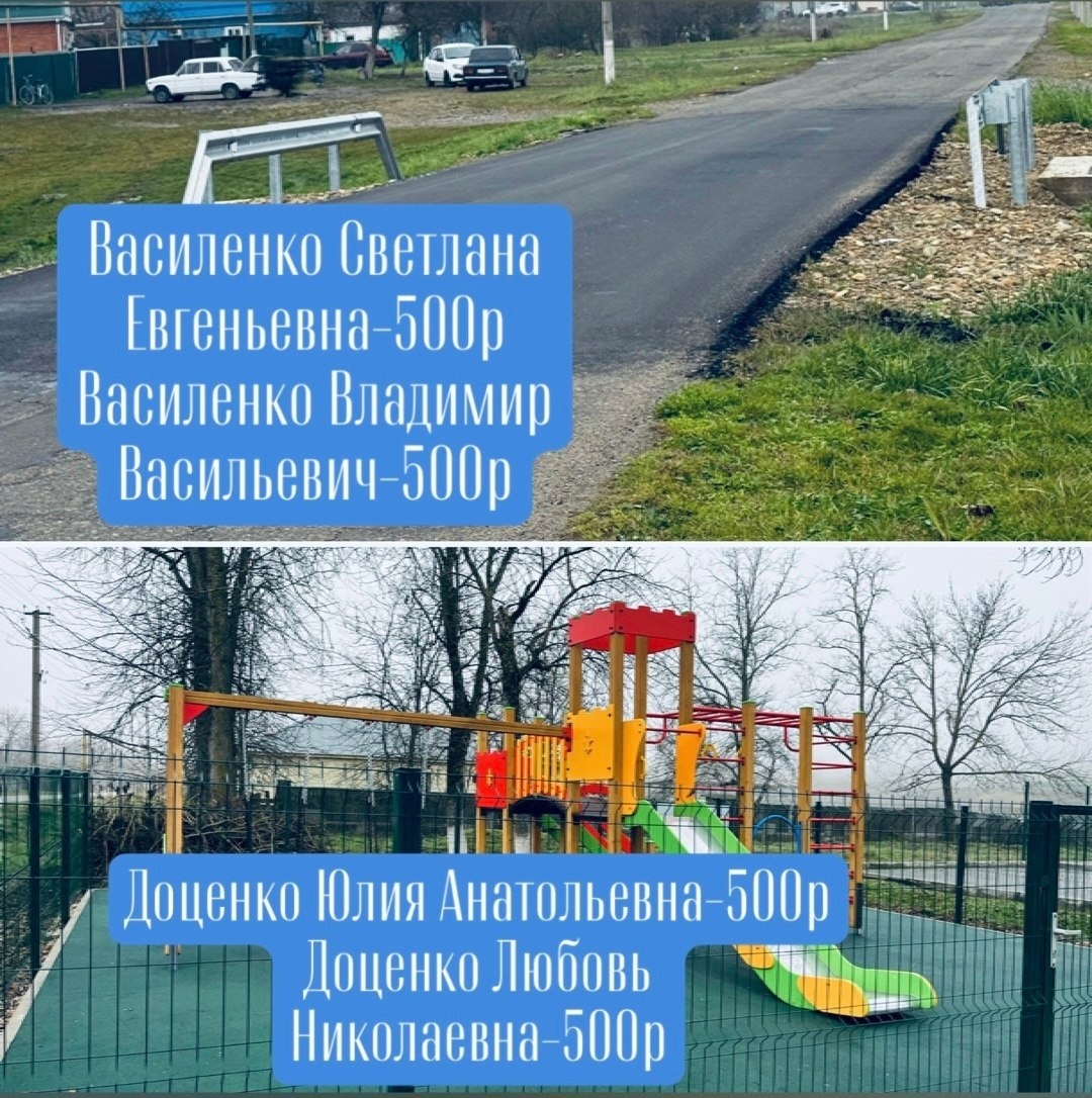 Администрация МО «Вольненское сельское поселение» выражает огромную благодарность коллективу МБОУ ООШ 13 за активное участие в сборе средств для Программы инициативного бюджетирования: «Строительство детской площадки в хуторе Кармолино-Гидроицкий» «Частичный ремонт и расширение дорожного полотна по улице Международная»