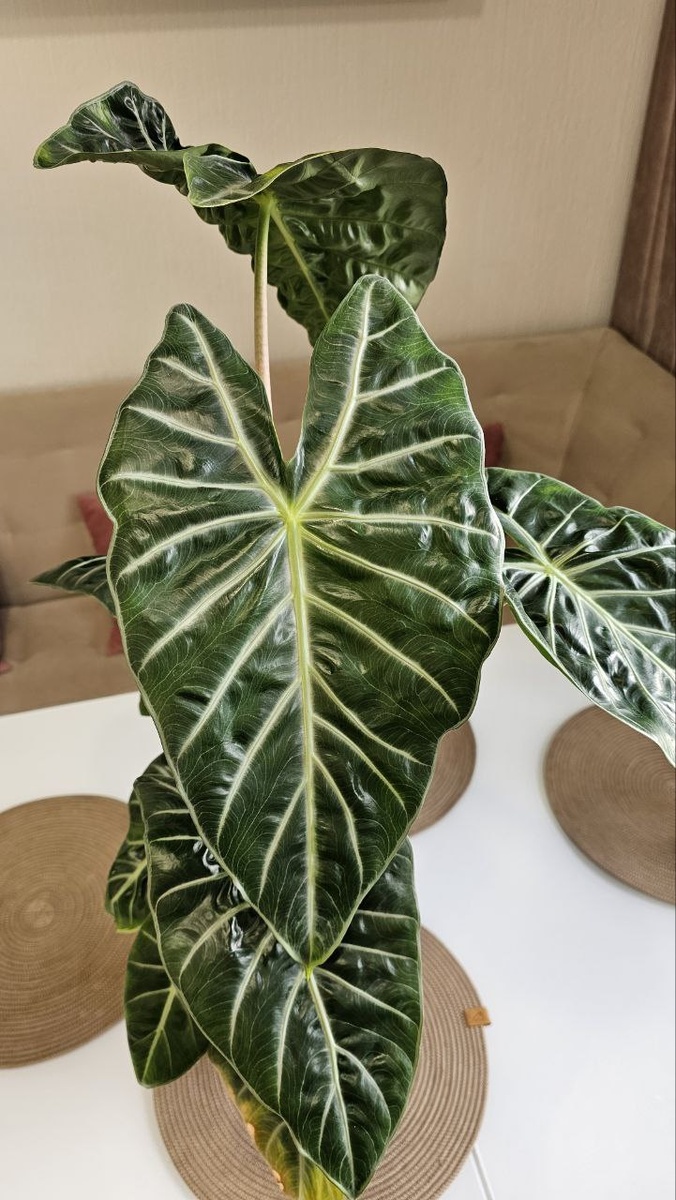 Уже гиганты! 😍 Мои алоказии: «Розовый дракон» «Шкура дракона» Выросли просто невероятно — смотрите, какие они большие теперь! 🪴 Каждый день наблюдаю за их развитием и не перестаю восхищаться: мощные листья, выразительная фактура, насыщенная окраска… Настоящее чудо в домашней коллекции! Кто тоже выращивает эти сорта? Делитесь фото своих зелёных питомцев в комментариях — будет интересно сравнить! 👇 #алоказия #комнатныерастения