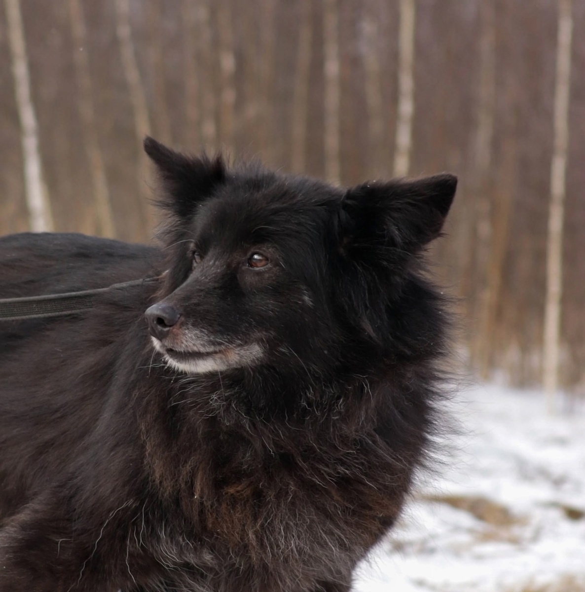 Принси около 6- 7 лет. Из состояния дичка вывели года 4 назад. Но до сих пор ходит она на прогулке челночком - два шага вперёд, три назад. Хотя ей очень нравится гулять, ей интересно оглядывать всё что попадается на пути, но изподтишка, как бы озираясь... И это видимо непоправимо.. С друзьями из вольера ведёт себя увереннее.