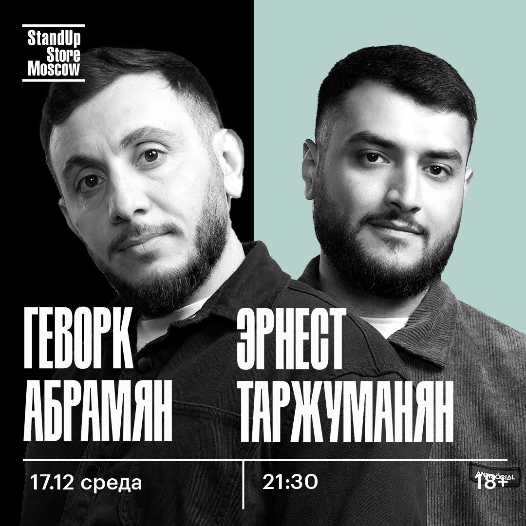 В среду, 17 декабря В 21:30 совместный концерт Геворка Абрамяна и Эрнеста Таржуманяна Купить билеты 📍Наш адрес: ул. Петровка д. 21, StandUp Store Moscow