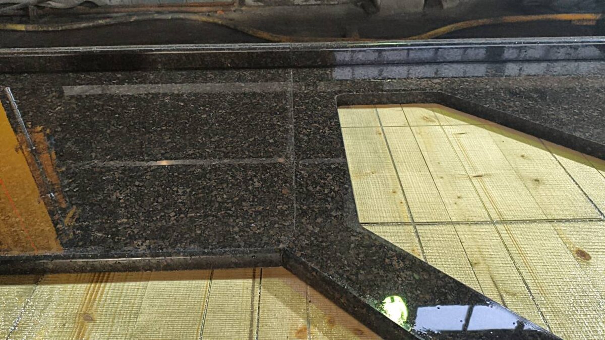 В работе — столешница из Дымовского гранита 🔥 Глубокий тёмный цвет с красивой “зернистостью” смотрится дорого и спокойно — идеально под современную кухню. Что сделали: ✅ точная геометрия и подгонка ✅ полировка в зеркало — поверхность реально “живая” и отражает свет ✅ аккуратный вырез под мойку/технику + обработка кромок ✅ гранит практичный: не боится воды, температуры и ежедневной кухни Если хотите такую же под ваш проект — напишите, рассчитаем под размеры и сделаем комплект (столешница/фартук/бортики). #дымовский_гранит #гранит #столешница #кухня #каменная_столешница #изделия_из_камня #производство #полировка #натуральный_камень