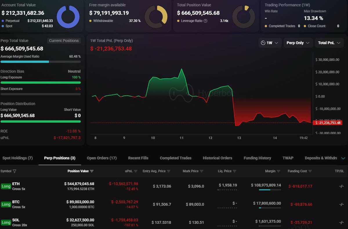 ЭТО НЕВЕРОЯТНО. Инсайдерский биткоин-кит теперь открыл длинную позицию на 544 миллиона долларов США в ETH. Это, вероятно, его крупнейшая позиция со времен короткой позиции на более чем 1 миллиард долларов США в BTC во время краха 10 октября. Что думаете)? 👍 заработает 🔥ликвид словит
