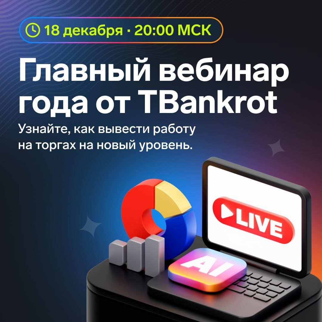 Новые инструменты для поиска, анализа и принятия решений на торгах — покажем на вебинаре уже в этот четверг Вас ждут инструменты, которых еще не было на рынке 🔥 📅 Когда? 18 декабря 🕒 Во сколько? 20:00 (МСК) На вебинаре вы узнаете, как: ✔️ Находить больше ценных лотов с новыми AI-функциями ✔️ Видеть реальную выгоду с помощью обновленной аналитики и метрик ✔️ Оценивать потенциал рынка на интерактивной карте 👉 Записывайтесь, чтобы не пропустить: https://clck.ru/3Qqk3q 🎁 Зрителей вебинара ждет эксклюзивное предложение. Если у вас есть вопросы о сервисе — смело приходите с ними. На вебинаре можно будет задать их напрямую нашей команде. Ну что, встретимся в четверг? 😉