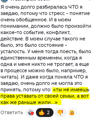 Читательница поделилась очень ценным опытом: Я решила разместить коммент в статью, чтобы на этом размышлении показать распространенную ситуацию - в одно предложение (управляющее убеждение) сплетены 2 разные реальности. И пока они так сплетены - поменять что-то или не получится, или будет сложно. Мы имеем дело с 2-мя реальностями: 1. усталость, 2. любовь к семье. Человек может устать от чего угодно просто потому, что это нормальный цикл работы систем. Не отдыхайте трое суток и организм разрушится непоправимо. Усталость - она про ограничения нашего тела, нашей биологии. привязанность к своей семье, положительные эмоции НЕ отменяют усталость, а маскируют её. Если мы вдохновенно работаем над каким-то проектом и не спим сутки, то мы берем энергию в долг и потом будем её отдавать. Касались этого совсем недавно, размещу и сюда тоже кусочек статьи с нашего сайта KgMinus.ru: Цитата из статьи: "Вся жизнь животного оказалась сконцентрирована на педали, и ни один другой центр мозга не мог вс