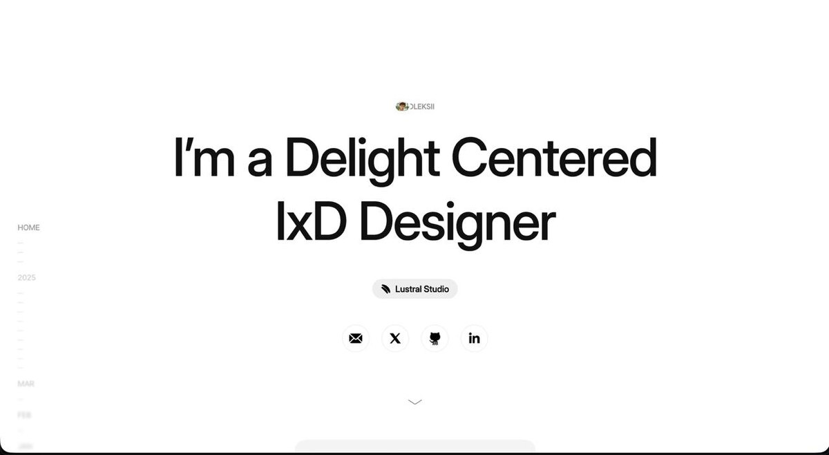 OLEKSII Отличный пример как сделать визуально «Вау», но недотянуть по остальному. Противовес предыдущему разбору с огненным визуалом. Сначала кайф: 1. Визуально круто — много воздука, аккуратно 2. Красивые анимации. Особый кайф как оно в размытие уходит при перелистывании 3. Идея! Сам уже лет 8 как ношу в себе идею портфолио-таймлайна, а тут вот оно. Потом разочаровыываешься: 1. Неудобно. Постоянно пролистываю дальше, чем надо, не могу проскроллить вправо, почему-то улетаю вниз. Ну такое 2. Таймлайн устаёшь листать до конца. Всего 2 года, а анимации поднадоели на старте. Хочется увидеть сразу всё, а не кусочками. 3. Ничего, кроме UI нельзя оценить. Ну такое для IxD. Да и для оценки UI маловато картинок В общем, посмотрите как можно сделать красиво свой сайт, но 1 в 1 не копируйте. Такое себе. Вы сможете лучше. #портфели