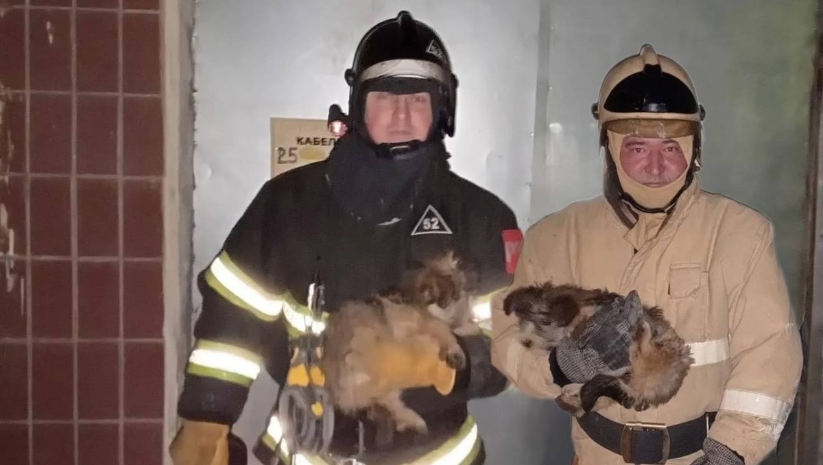 В Тверской области пожарные спасли из подвала двух щенков