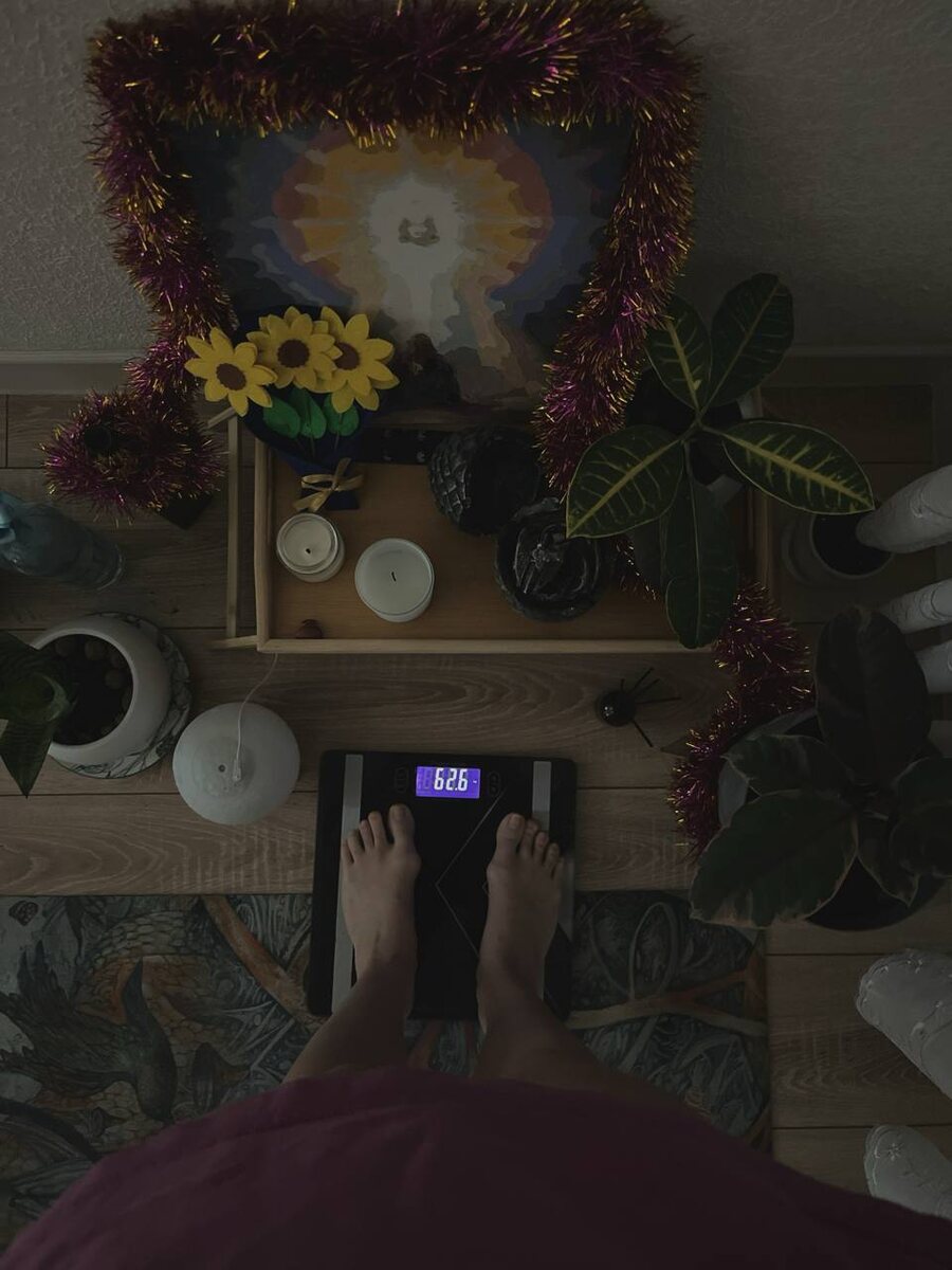 🤍 По кг похудела на 2,6 кг Либо сломались весы 🫣 Обычно по 500-1кг уходило в день. Сейчас по-другому, может из-за спорта… А так важны не кг были, а программы, которые стали проявляться. Одна из них - алкоголь. По-другому я не смогла ее убрать. Сейчас чувствую от людей запах и тошно 🤢 а ведь я походу тоже так пахла😅 это как пример. Таких но за год знаете сколько скопилось ) По объемам по 3 см ушло. Визуально это выглядит конечно будто сильно похудела. Когда сбрасываются программы и сути, которым это было нужно, то человек будто оживает и приходит к своей норме. Я это так называю)