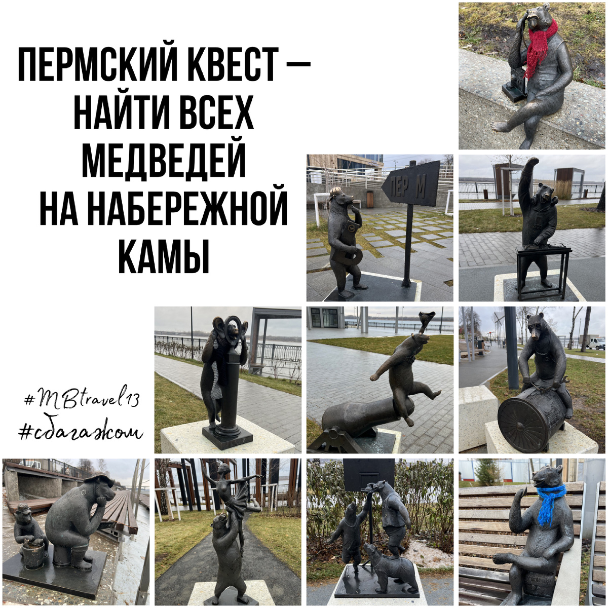 📍В парке на набережной у Речного вокзала Пермь-1 расставлены мини-скульптурки. 😉Вспоминаю Ярославль с медведиками, установленными по всему городу, павлинов в Серпухове, грибы в Рязани и пр. ... Так что в Перми задача проще. Медведи в одной локации!!! Нами найдены: 1️⃣Медведь-филолог, или «Пермь мягче, чем вы думаете» Фигурка животного в задумчивой позе держит «ь» с вопросом во взгляде «куда ставить?» букву в названии на указателе. Правильное написание названия города «Пермь» (с мягким знаком после «м»), но произносится слово по-разному: местные говорят «Перьмь» (с мягкими «р» и «м»), и это традиция, а литературная же норма подразумевает произнесение с твёрдым «р» – «ПеРмь». Отмечу, всё-таки, что смягчение звука «р» перед «м» — это исторически правильная норма. В купленном мною пермском разговорнике тоже указан этот момент: «ПерЬмь» – вот почему. Местный мем. 2️⃣Медведь-пушечник, или «Медеплавильное дело и пушечное производство» Фигурка сидит на пермской Царь-пушке, протот