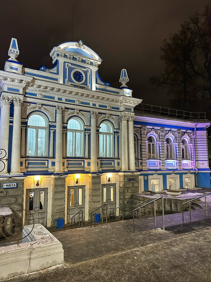 Смотреть театры снаружи - это, конечно, прекрасно, но все-таки внутри намного лучше! Вот в этом чудесном здании, в двухэтажном особняке в стиле модерн, построенном в конце XIX века меценаткой Елизаветой Любимовой по проекту архитектора А. Турчевича, с 1987 года расположен ТЮЗ! Вместе с блог-туром проекта ТопБЛОГ и администрации города Перми мы отправились смотреть спектакль «Тимур и его команда». Я подготовилась, пионерский галстучек взяла с собой - попыталась, так сказать, влиться в атмосферу. Так вот - зал был заполнен полностью! В основном юными пионерами, на которых и рассчитан спектакль) 1.20 без антракта - но тут мы и посмеялись, и всплакнули в паре мест, а главное, что дети вокруг смотрели очень увлеченно, без лишних разговоров и шума. Казалось бы, мы заходили в театр через парадный вход, но на самом деле изначально в особняк вход был справа, и сразу на второй этаж - нижний был больше для служебных дел. Именно с этого старинного входа и началась наша экскурсия по закулисью…