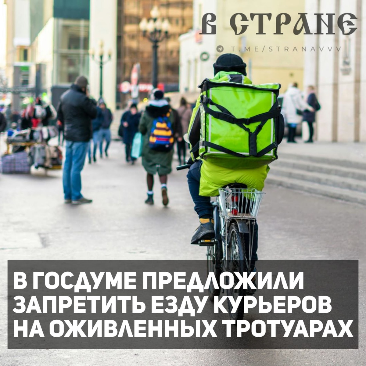 Полностью запретить езду курьеров на наиболее оживленных пешеходных участках предложила глава комитета Госдумы по развитию гражданского общества, вопросам общественных и религиозных объединений Яна Лантратова. Поддерживаем? 👍 — да, нечего им делать на тротуарах. 👎 — нет, они не мешают. ✅ «В Стране» в MAX