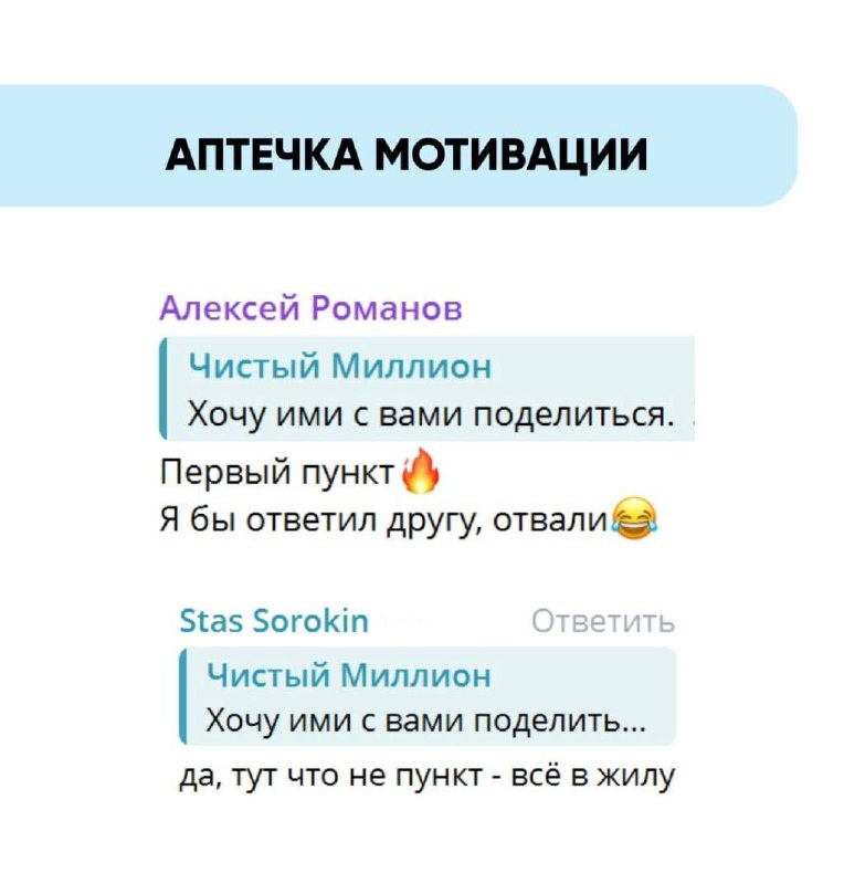 Иногда проблема не в лени. А в том, что мотивация ломается. ⠀ — постоянно себя ругаешь; — ловишь мысль: «А зачем я вообще это делаю?»; — знаешь, что надо делать, но не делаешь. ⠀ Это не уникальные ситуации. Через это проходят почти все. ⠀ В Чистом миллионе я выложил пост с разбором 9 таких проблем и короткими решениями. Назвал его «Аптечка мотивации». ⠀ Открыл, осознал, применил. Когда застрял и нужно снова двигаться. Поэтому люди и остаются в клубе👌