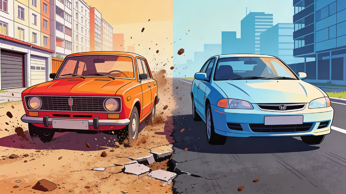 Все вокруг советуют одно и то же: «Хочешь, чтобы машина не ломалась — бери японца». А где‑то в глубине двора стоит дедовский Жигуль, который уже пережил трёх хозяев, два капремонта и один серьёзный семейный скандал, и тихо посмеивается над этими разговорами. Потому что там, где японец привык жить по инструкции, советская техника привыкла выживать по понятиям. Японец создан для ровного асфальта, аккуратного ТО и оригинальных фильтров. ВАЗ‑2101 с самого рождения был заточен под реальную жизнь: ямы, бордюры, вечную грязь во дворе и ремонт при помощи молотка, отвёртки и священной изоленты. ВАЗ‑2101 против японского «правильного седана» «Копейка» официально — компактный седан, разработанный на базе итальянского Fiat, но адаптированный под наши дороги и привычки. Её клиренс, простая подвеска и честный задний привод позволяли ездить туда, где любой аккуратный японец уже начал бы нервно поскрипывать бампером. Типичный японский седан любит, когда его гладят: мягкая подвеска, тишина, всё по