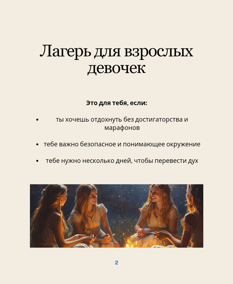 Лагерь для взрослых девочек 35+ придумался сам собой, когда ко мне в менторство начали приходить женщины-руководители, которым нужно передохнуть и задать себе важные вопросы: "А чего я хочу? ", " Какая я? ", " Что мне нравится? " Потому что работали, растили детей, руководили, переезжали. В общем, были заняты важными делами настолько, что не было времени на себя. Вот поэтому и возник Лагерь для взрослых девочек "Созвездие Ежа". И мы едем в Подмосковье 24-25 января 2026 года! План такой: И ещё Вот контакты Присоединяйтесь к нам!