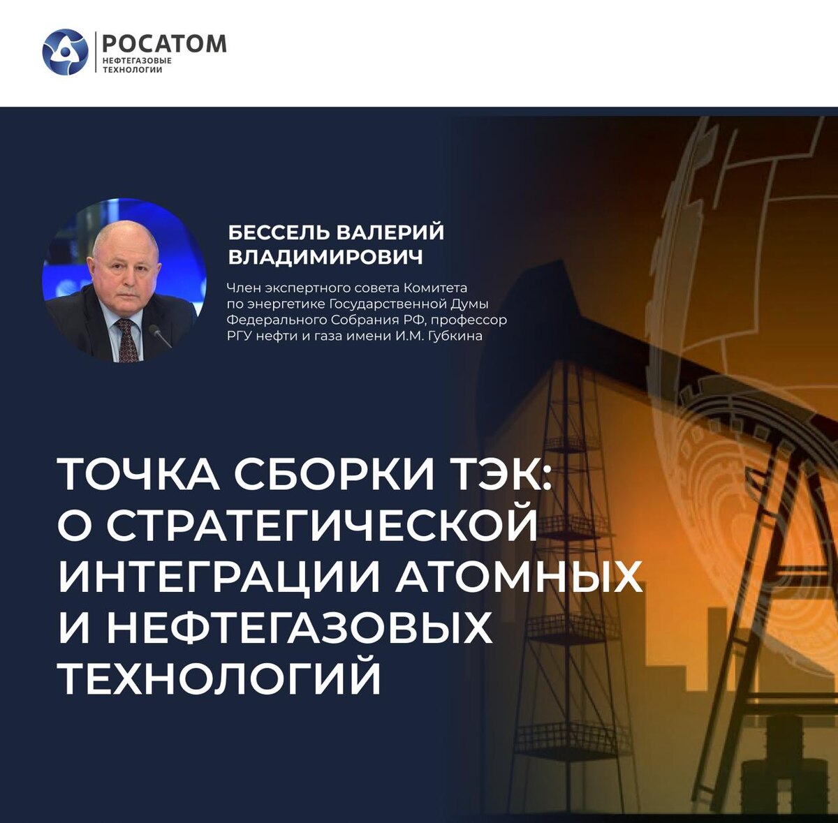 Мы взяли большое интервью у профессора Валерия Бесселя — одного из ведущих экспертов российской энергетики, члена экспертного совета Комитета по энергетике Госдумы и профессора РГУ нефти и газа им. Губкина. Обсудили: ⚡ как атомные и нефтегазовые технологии формируют новый технологический уклад; ⚡ зачем отрасли реакторы малой мощности и «атомная мобильность» для освоения Арктики и Сибири; ⚡ как «ядерное зрение» меняет геофизику и разведку; ⚡ почему многофазный расходомер — это билет к управлению месторождением в реальном времени; ⚡ что станет главным драйвером роста в ближайшие 5–7 лет; ⚡ и какое нематериальное преимущество делает Росатом уникальным партнером для нефтегаза. Получился замечательный разговор о будущем энергетики — честный, глубокий, авторитетный (спикер – абсолютный профессионал в отрасли) и поэтому особенно для нас ценный. 📖 Полную версию интервью читайте на нашем Яндекс.Дзене — уже опубликовали! #80ЛетАтома #Атом #Нефть #Энергетика