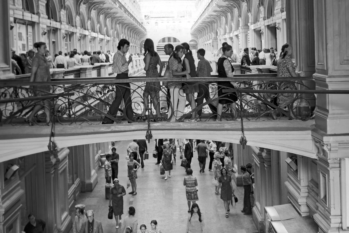 В СССР не было торговых центров, бутиков и шопинга. Был ГУМ, ЦУМ и районные универмаги — огромные здания, где продавали всё: от иголок до холодильников. Туда шли не за покупками, а «на охоту» — высматривали, что «выбросили», стояли в очередях, договаривались с продавцами. Покупка в универмаге была не просто покупкой, а целым приключением.