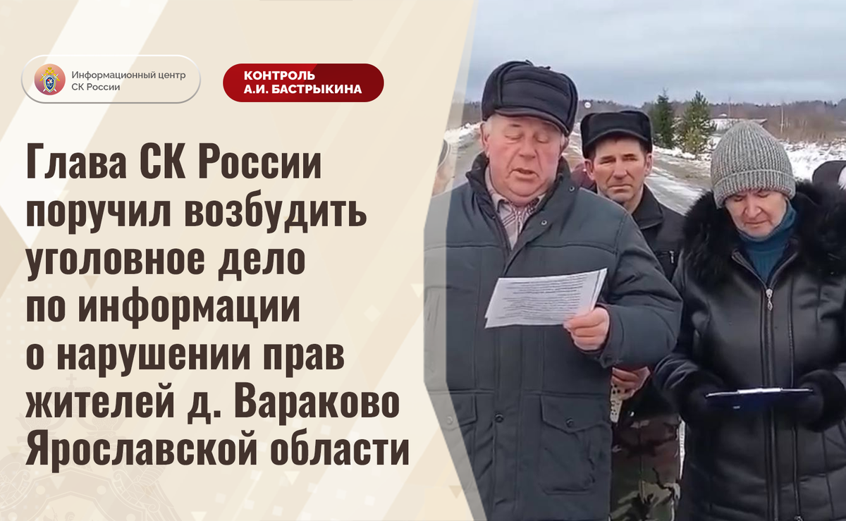 Глава СК России поручил возбудить уголовное дело по информации о нарушении прав жителей д. Вараково Ярославской области