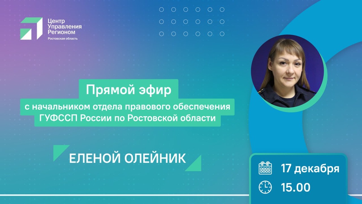 🎙ЦУР Ростовской области продолжает серию прямых эфиров ➡️Подробно о том, какие социальные гарантии предусмотрены для участников СВО и членов их семей, поговорим с начальником отдела правового обеспечения ГУФССП России по Ростовской области Еленой Олейник. 💻Подключайтесь к прямой трансляции 17 декабря в 15:00 в паблике ЦУР Вконтакте. О том, что вас интересует, спрашивайте в комментариях. #прямыеэфиры #цур61 #цуринфо #ЦУРРостовскойобласти #Ростовскаяобласть