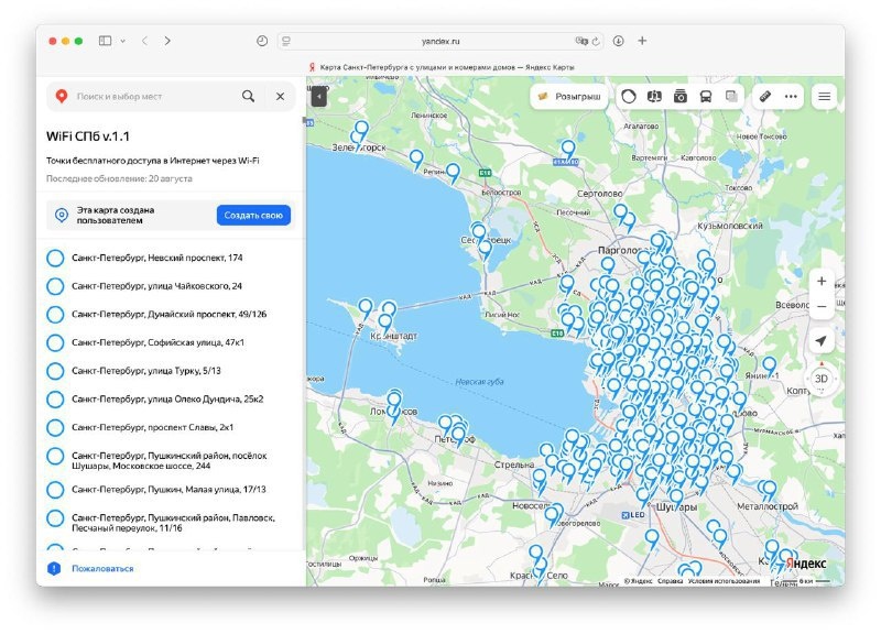В поисках бесплатного Wi-Fi в Санкт-Петербурге при отключении мобильного интернета стоит обратить внимание на карту точек доступа