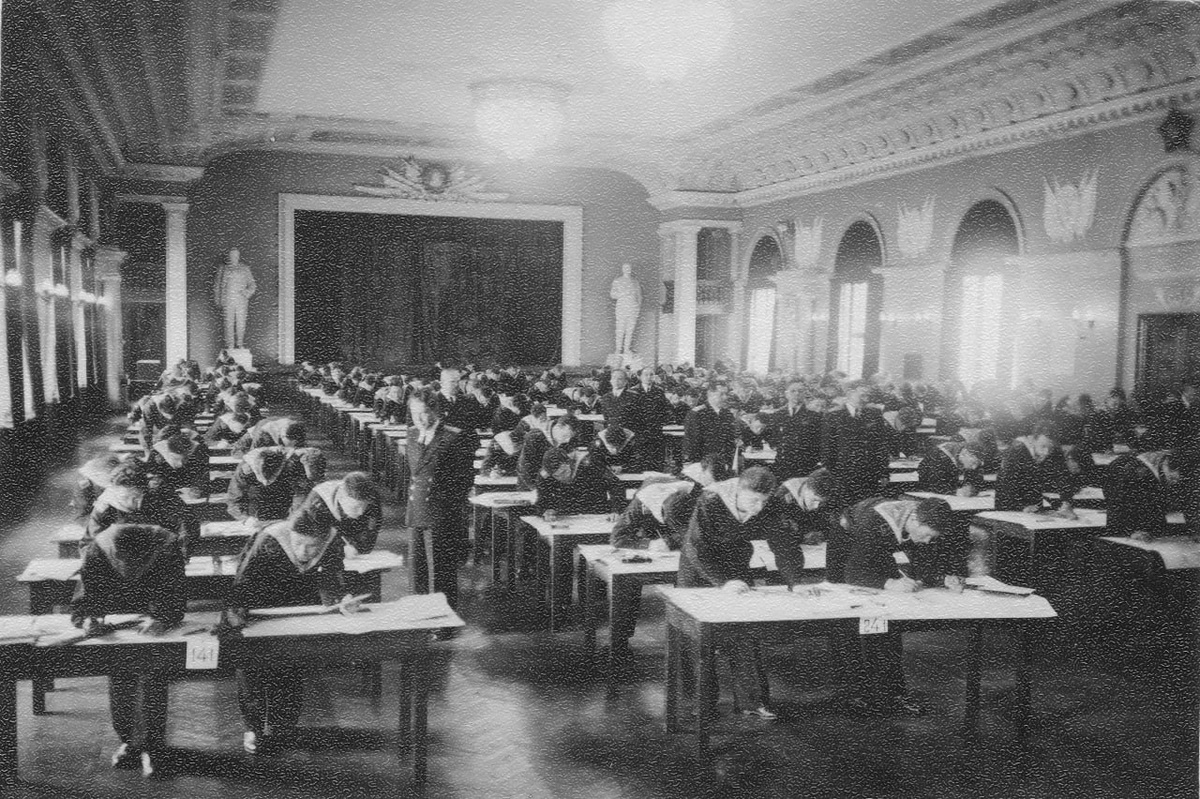 Экзамен по навигации в зале Революции в клубе Высшего военно-морского училища имени Фрунзе, 1959 год