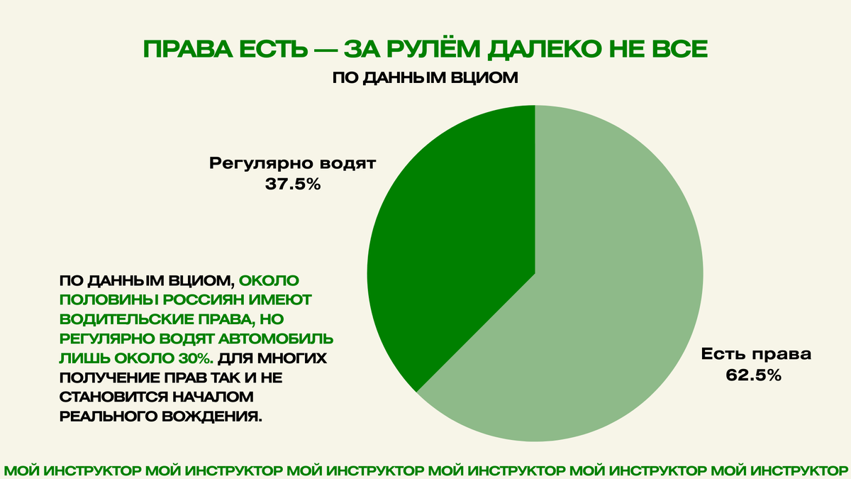 Права есть у 50% россиян, а водят — около 30% Каждый второй взрослый россиянин имеет водительские права, но регулярно садятся за руль лишь около 30%. Остальные либо водят крайне редко, либо не ездят вовсе — и это не ощущение, а данные социологического опроса. По информации ВЦИОМ, около половины взрослых имеют водительское удостоверение, однако только треть использует его в реальной жизни постоянно. Это означает, что для миллионов людей автошкола заканчивается экзаменом, а не началом самостоятельного вождения. Именно этот разрыв между «права получены» и «я действительно езжу» и становится ключевой проблемой, о которой почти не говорят. Что автошкола делает неправильно Главная ошибка автошколы в том, что она готовит не водителя, а экзаменуемого. Ученика учат правильно выполнять упражнения, заучивать маршруты и действовать по команде инструктора, но почти не учат принимать решения самостоятельно. В итоге человек привыкает, что рядом всегда есть подсказка, знакомая дорога и ощущение конт