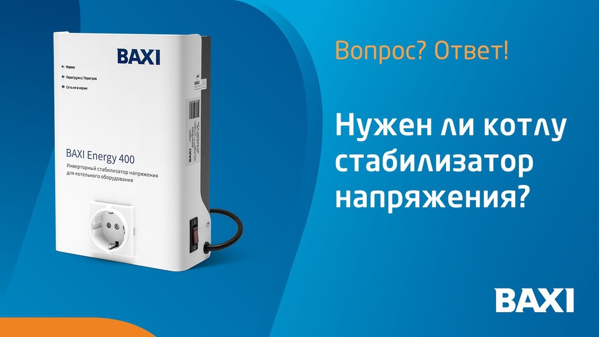 ❓ Вопрос: Нужен ли стабилизатор напряжения для корректной работы котла? ❗Ответ: ✅ Если параметры электросети соответствуют стандартам («чистая» синусоида, 50 Гц, 230 В ±10%-15%), то стабилизатор не требуется. ⚠️ Если напряжение выходит за эти пределы (часто бывает в сельской местности или на дачах), то стабилизатор необходим. 🔧 Что выбрать? • Релейный или инверторный стабилизатор подойдут для обычных скачков. • Только инверторный (например, BAXI ENERGY), если в сети нет «чистой» синусоиды. Такие модели генерируют идеальную синусоиду независимо от входного сигнала. 🛡️ Ключевое преимущество инверторных стабилизаторов: Мгновенная реакция защищает электронику котла от резких скачков напряжения (например, при массовых отключениях и включениях сети).