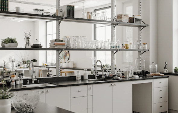 - Организация пространства. Полки, ящики и шкафчики под столешницей упрощают хранение инструментов и реактивов, делая рабочее место более функциональным и аккуратным.