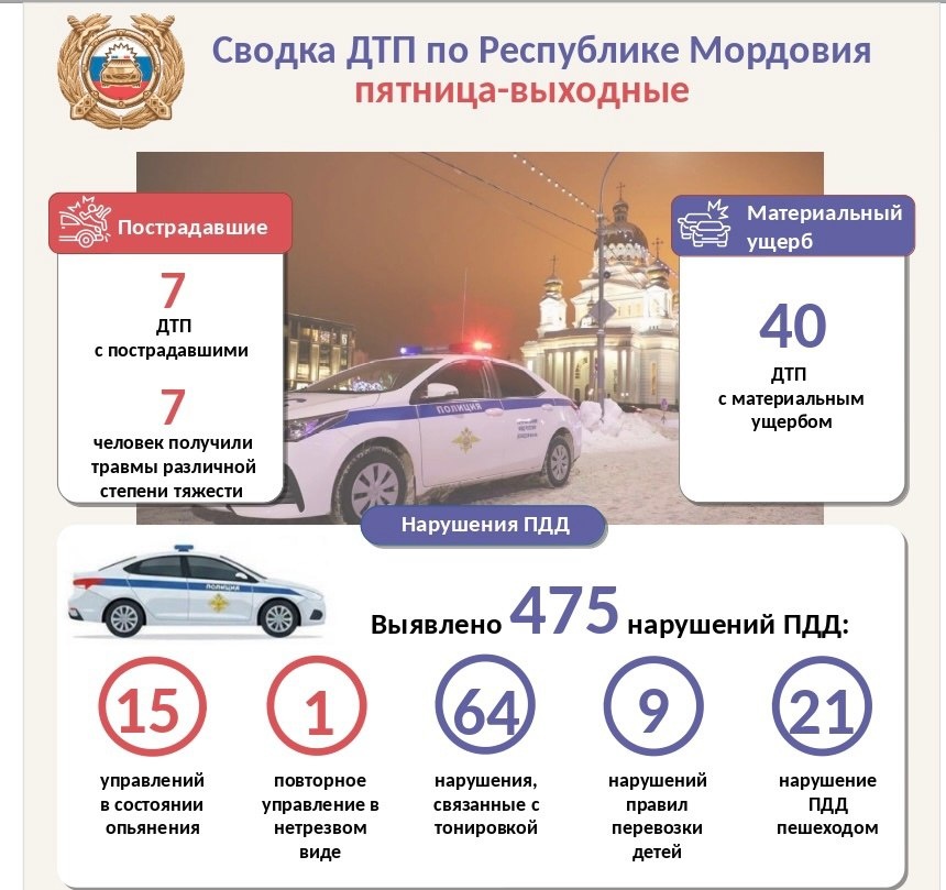 👮♂️ Обстановка с аварийностью на дорогах Мордовии и нарушениями ПДД с 12 по 14 декабря 2025 года