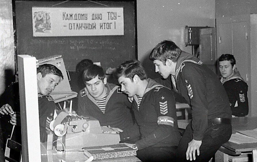 Тактико-специальное учение проходило дней 10. Эта фотография, что ниже, первая не из-за значимости в данном событии курсантов и персонально капитана 1ранга, с немыслимыми достижениями по жизни Зотова ВВ, снявшего под меня целый ресторан и потом спросивший: «А что ещё кто-то и пришёл?», а из-за плаката, как визитной карточки наших успехов.