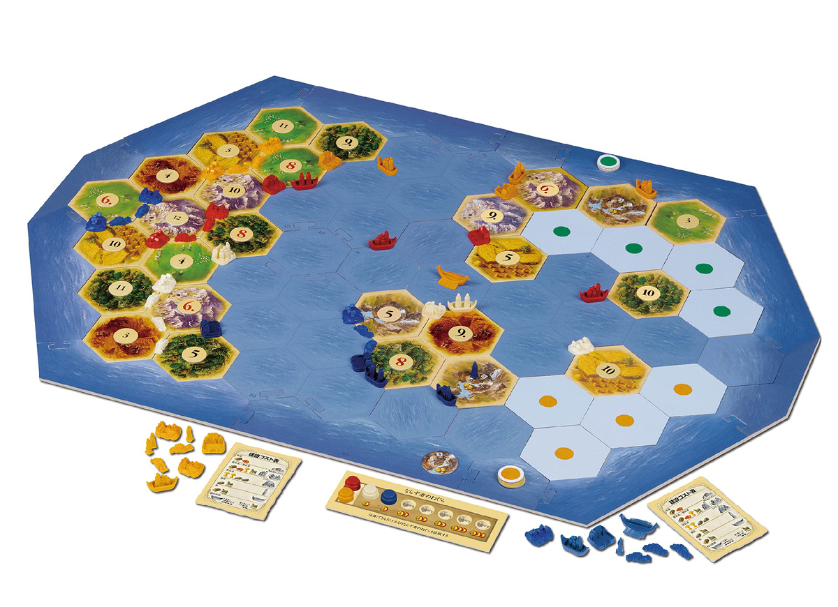 номерные жетоны и жетоны гаваней нужно положить строго на гексы суши по схеме сценария.