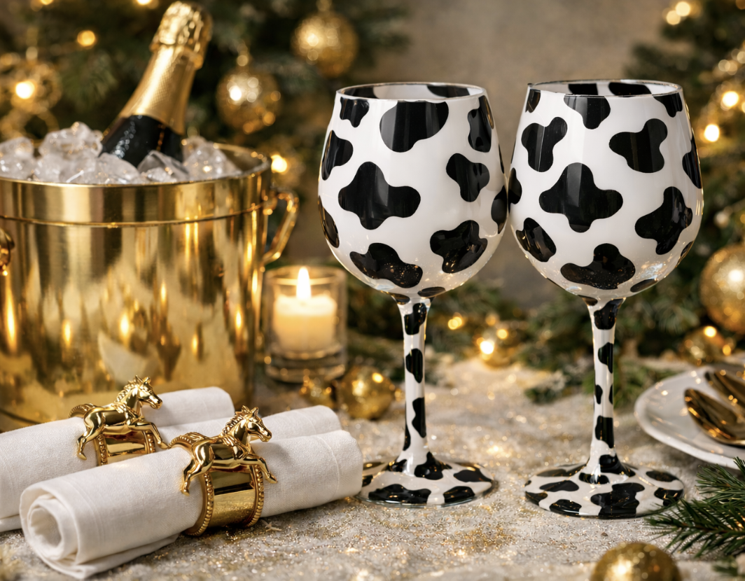Новый год — это не только меню, но и атмосфера за столом. Хорошая новость в том, что эффектную сервировку можно сделать без сложных композиций и долгой подготовки. Достаточно нескольких акцентных деталей, которые сразу создают ощущение праздника. В этой подборке — вещи, которые помогают накрыть новогодний стол быстро, красиво и без лишней суеты. Что помогает создать новогоднюю атмосферу за столом 1. Бокалы в форме ёлки для вина и шампанского, 2 шт Бокалы в форме ёлки Форма ёлки сразу задаёт новогоднее настроение, даже если остальная сервировка максимально простая. Такие бокалы хорошо смотрятся и при дневном свете, и при вечерних огнях гирлянд. Бокал Ёлка для вина и шампанского 2 шт на Wildberries 2. Кольца для салфеток золотые с лошадью, 6 шт Кольца для салфеток с символом года Небольшая деталь, которая моментально собирает сервировку в единый образ. Символ года добавляет настроения, а золото хорошо сочетается с белой и зелёной скатертью. Кольца для салфеток золото с лошадью на Wildb