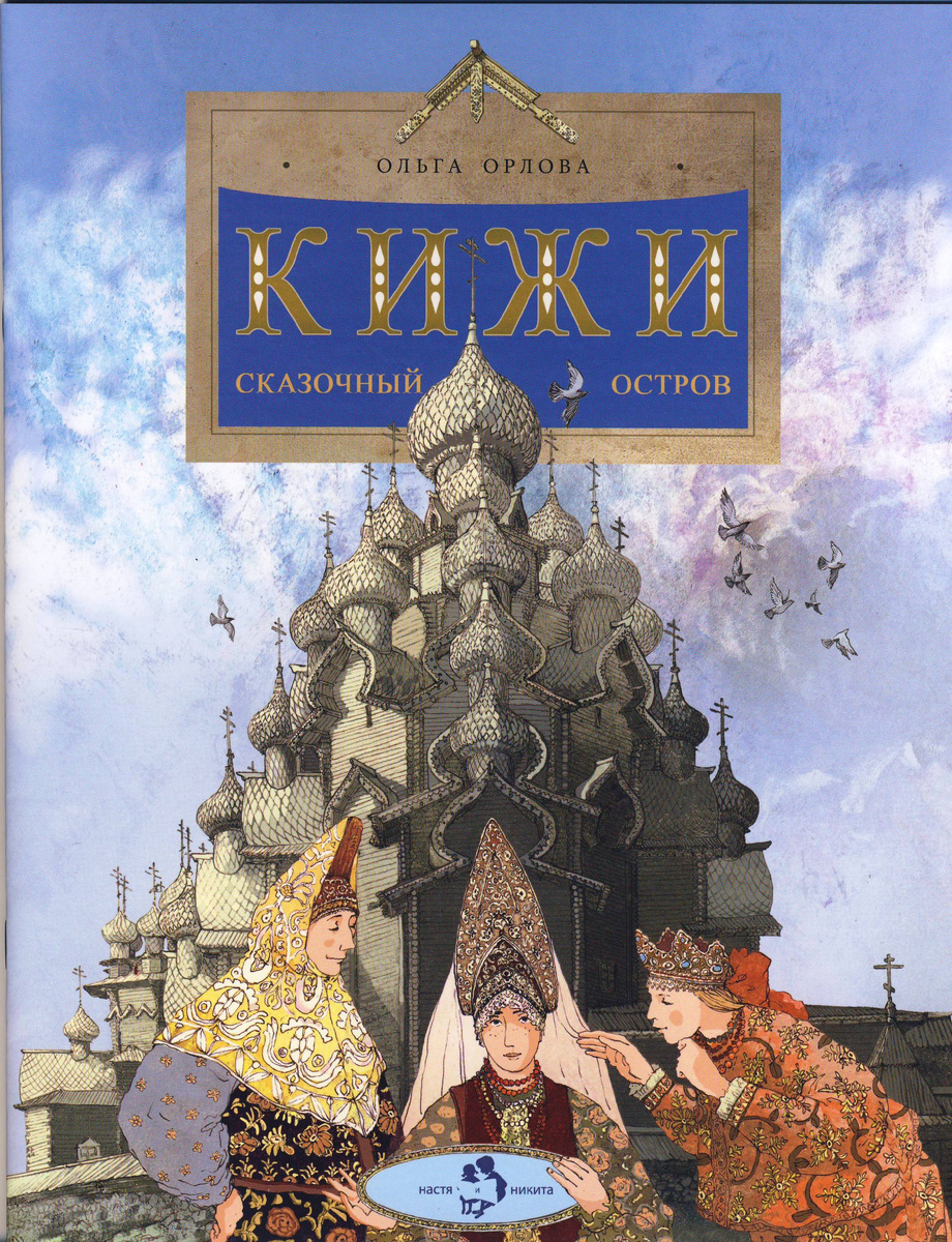 Читаем новинку Ольги Орловой: «Кижи. Сказочный остров». Книга вышла в издательстве «Настя и Никита», которое многие читатели знают и любят за увлекательные и познавательные, но в то же время компактные истории. Текст Ольги Орловой идеально «ложится» в формат этого издательства: сразу вспоминаются «Подводные города» её авторства. И вот новая тема, и новая локация — и какая! Отдалённая, труднодоступная, такая желанная… остров Кижи. Автор отталкивается от этимологии слова и приглашает читателя поиграть. Да-да, «кижат» по-карельски означает «игрища». Эту игровую, сказочную линию поддерживают и развивают иллюстрации Наталии и Петра Кондратовых. Задача перед художниками стояла сверхсложная: изобразить памятники древнерусского зодчества точно, но при этом художественно, и ещё ввести персонажей, которых нет в тексте! Кижи представляют собой музей зодчества под открытым небом, то есть большинство построек были сняты со своих мест и перевезены на остров. Но все их объединяют люди, которые когд