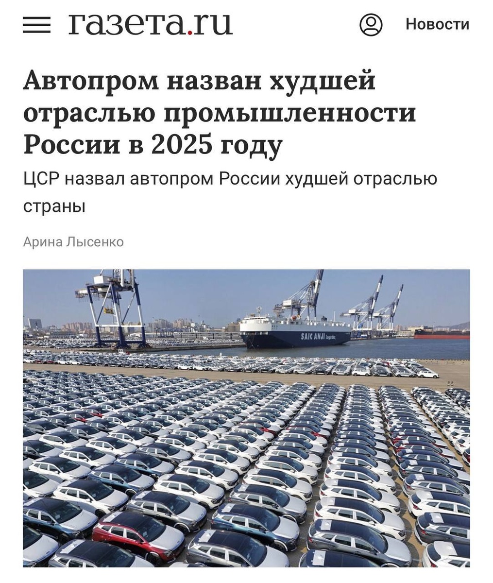 Российский автопром признали ХУДШЕЙ отраслью промышленности в 2025 году. По данным аналитиков, рынок переживает не временный спад, а глубокий структурный кризис. За январь-октябрь выпуск автотехники рухнул на 22%, а в одном только октябре — почти на 40%, что стало антирекордом среди всех отраслей. Производство легковушек снизилось почти на 10%, продажи — на 18%. #автопром #российскиеавто #кризис #авто2025 #промышленность #экономика #tiktoknews #новости