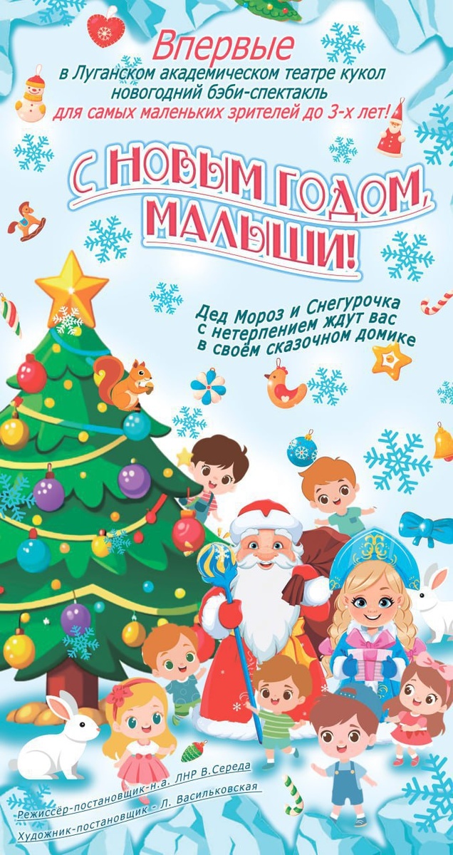 🎭 Впервые в Луганском театре кукол — иммерсивный новогодний бэби-спектакль для детей до 3 лет! Малышей ждут сказочные герои, которых можно будет трогать и обнимать, волшебные элементы и фото с Дедом Морозом и Снегурочкой. Даты: 🔴28 декабря — 10:20 🔴30 декабря — 10:20, 14:30 Подписаться | Наш чат